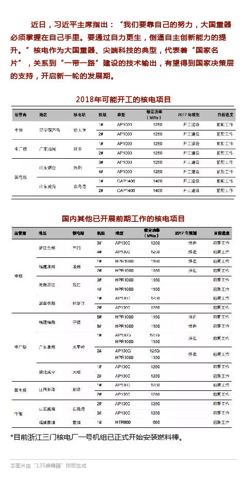 重磅 | 2018年可能开工的核电项目一览