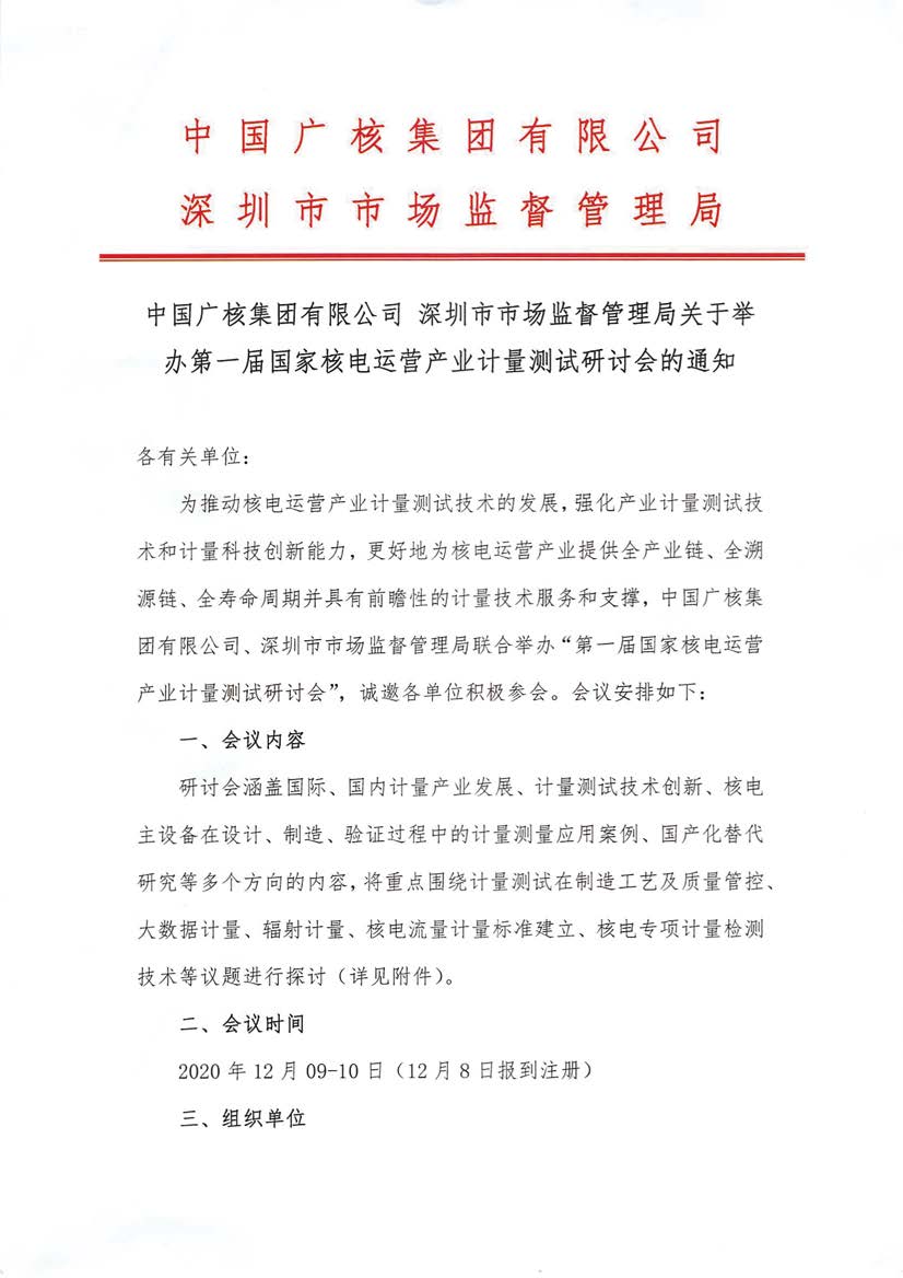 本次研讨会由中国广核集团有限公司、深圳市市场监督管理局联合主办,国家核电运营产业计量测试中心(筹)、中广核(深圳)运营技术与辐射监测有限公司承办。