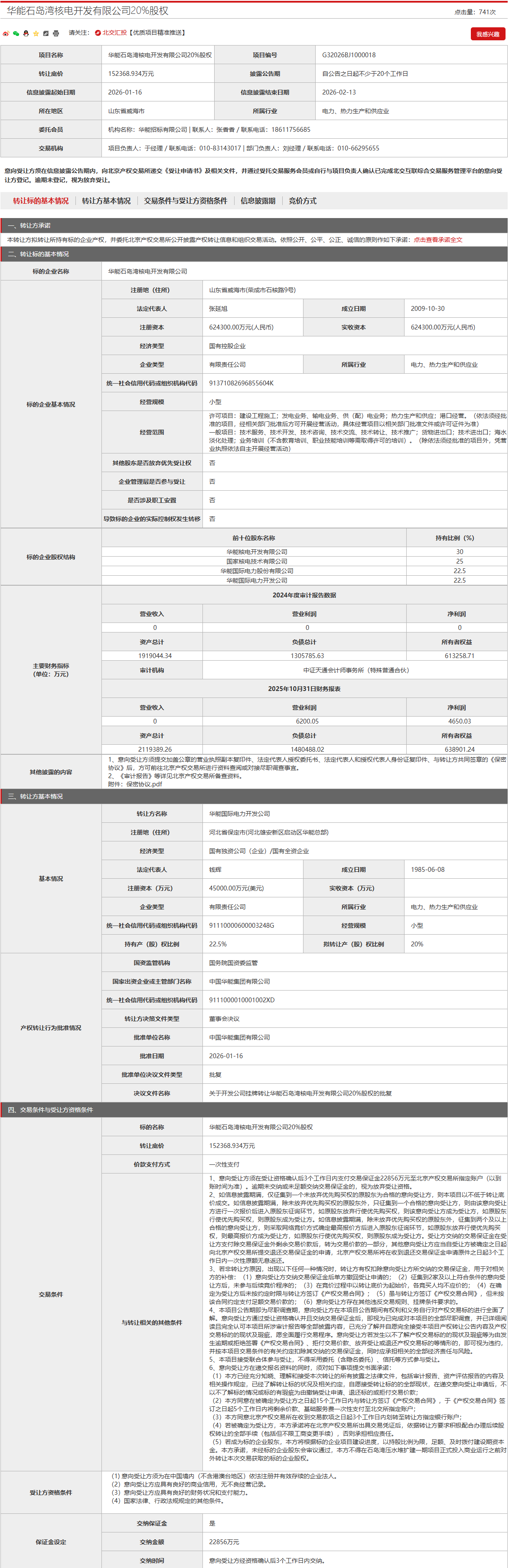 股权信息显示,该公司由中国核能电力股份有限公司的子公司中核山东核能有限公司全资控股。