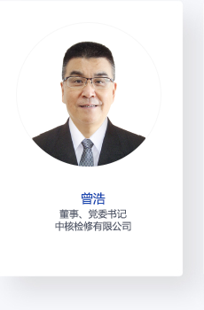 | 曾浩,中核检修有限公司董事长、党委书记,研究员级高级工程师,中央企业劳动模范,获核能行业协会科学技术奖二
