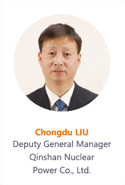 Liu Chongdu, male, received his master's degree in 1996 and now works as a senior engineer at research fllw level, the highest ranking of engineers in mainland China. He is the deputy director of Qinshan Nuclear Power Plant and oversees the maintenance and repair of the power plant after working in various positions with responsibilities including, in time order, the supervision and technical support of equipment building, the purchase of nuclear power equipment and the supervision of the equipment installation, the supervision of the regular inspection and maintenance and the overhauls of the nuclear power reactors.